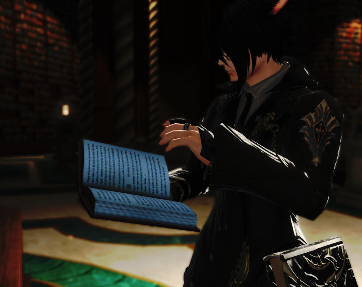 Before he was born, his father, a Hyur gleaner from Sharlayan (originally from Doma), met his mother, a moon Miqo'te in Ala Mhigo. After the usual period of courtship, they eventually wed. As the oppression of Garlemald continued to choke Ala Mhigo, the couple returned to Sharlayan, wanting their child to not be born under wartorn skies. Blake was then born and raised as a Sharlayan citizen, though he never forgets the heritage he gets from his parents.As a Sharlayan student, Blake studied the ways of the Sage. He was a notably proficient student and enjoyed studying the arcane arts.Blake was 15 years old when the Seventh Umbral Calamity struck while he was visiting Eorzea with a student delegation. While he forgets the details of the event, he can't help but remember brief glimpses of the ordeal. At first, he was terrified of Bahamut and the reckless obsession of Garlemald but then his curiosity began to take hold. His fear turned into obsession as he began fervently studying the nature of Dalamud and its Allagan creators.He began studying all he could about Allag, eventually coming upon an old tome regarding the Allagan royal bloodlines. As he was reading the final entry, his world began to spin and his head pained him immensely. He began having a vision of an ancestor retelling the tale of their bloodline, how those descended from the Allagan royal family spread throughout the continent, some even leaving the continent entirely. Once he awoke out of the vision, and verifying that it wasn't a simple fever dream, he slowly came to the conclusion that he was potentially descended from Allagan royalty. Researching what had happened to him, he discovered he had the ability known to scholars as the Echo, though he could find nothing on its origins as knowledge on the subject was sparse.At the age of 18, Blake completed his education and left Sharlayan to travel through Eorzea. He arrived in Limsa Lominsa and joined the Arcanist Guild to further his personal studies. During this period, he assisted a few groups of adventurers in taking down various primals that were summoned. He eventually joined an expedition to the Crystal Tower, and during the expedition, he discovered a peculiar soul crystal, detailing the practices of Allagans who used summoning magics to channel the power of the primals. Believing this to be more than mere coincidence that he was the one to discover it, Blake took up the art wholeheartedly.At age 20, deciding to further his research, he began making his way to Idyllshire. Along the way, he was unfortunate enough to be in the area when the spider primal Shologo was summoned. Not prone to wanting a primal to run free, he joined up with a group of Adventurers to take Shologo down. He would then become one of the founding members of the Dawn Vigil, alongside the Adventurers he met.